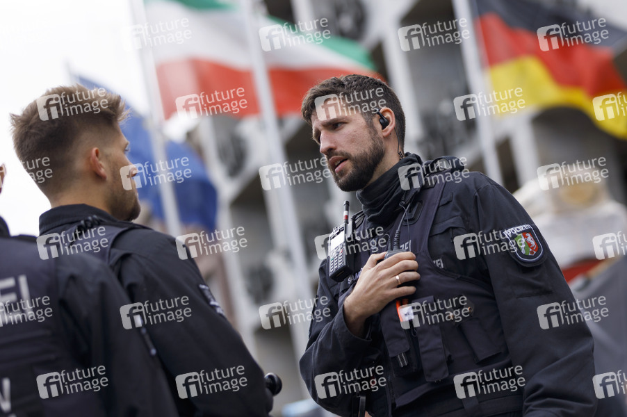 Polizisten bei einer 1. Mai-Demonstration am Rathausplatz. Köln, 01.05.2020