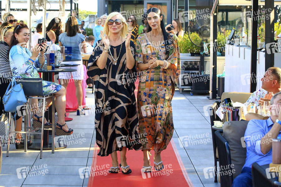 Zoe Helali und Sylke Schumann aka Celia von Barchewitz bei der Rooftop Fashion Show von Viktoria Varga und Celia von Barchewitz und Charity Gala auf der Dachterrasse Bar Cabana im Innside by Melia. Leipzig, 13.08.2024