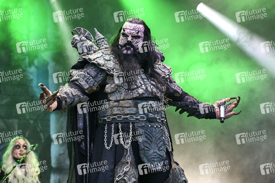 Hella und Tomi 'Mr. Lordi' Putaansuu von Lordi live auf dem Riverside Festival. Aarburg, 24.08.2024
