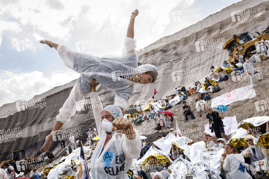 Erderwärmung, Klimagase, Kohlegegner, Klimaaktivisten, Klima-Notstand, Klimanotstand, Klimakrise, Klima-Krise, Energiewende, CO2, Treibhausgase, Klimaschutz, Schulstreiks für das Klima, Klima-Demonstration, Klima-Demo, Klimademo, Fridays for Future, Ende Gelände, Demonstration, Demonstranten, Demo, Kundgebung, Kohlekraft, RWE, Protest, Aktion, Banner, Parolen, Politik, Klimaschutz, Klimakrise, Klimawandel, CO2-Ausstoß, CO2-Steuer, Kohleausstieg, Fossile Brennstoffe, Klimapolitik, Hochneukirch, Keyenberg, Jüchen, Erkelenz, Grevenbroich, Tagebau, Garzweiler II, Braunkohlerevier, Climate Change, Jugendbewegung, Aktivismus, Climate Justice, Polizeikette, Polizei, Grubensturm, Demonstrationszug, Braunkohlegegner, Grubenrand, Aktivisten, Goldener Finger, Polizei, Polizeikräfte, Aktionsbündnis, Neurath, Kohle, Kohleversorgung, Braunkohle, Steinkohle, Symbolbild, Symbolfoto