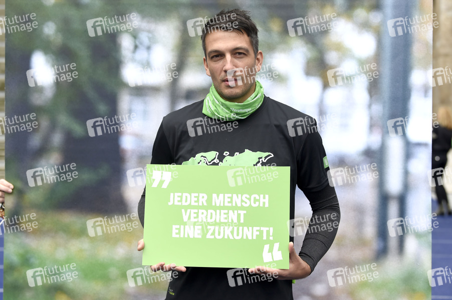 Max Hemmersdorfer beim Fototermin zur sportichen '#WocheChallenge' im Olympiastation Berlin. Unter dem Motto 'Wir können was bewegen!' ruft die Welthungerhilfe zu dieser Challenge auf und bittet um Spenden für eine Welt ohne Hunger. Berlin, 09.10.2020