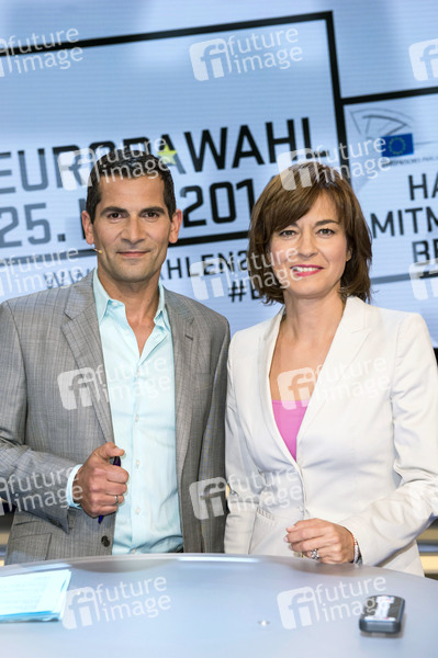 Moderator, Moderatorin, Unterhaltung, Entertainment, Politik, Talk, Show, TV, Fernsehen, Europawahl, Kultur