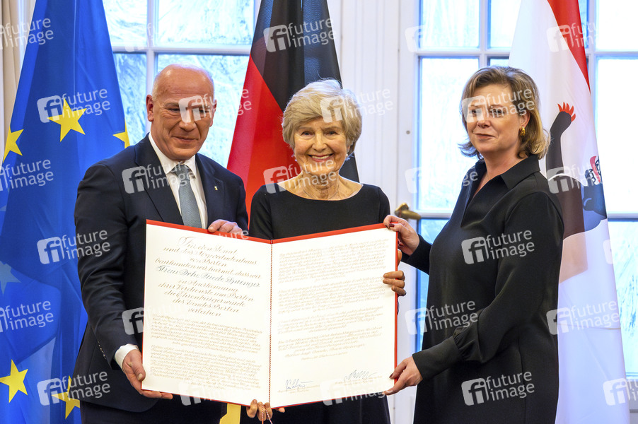 Kai Wegner, Friede Spriner und Cornelia Seibeld bei der Verleihung der Ehrenbürgerwürde an Friede Springer im Festsaal Rotes Rathaus. Berlin, 26.02.2025