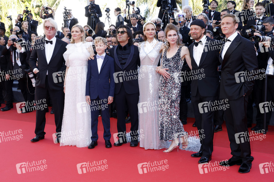 Team und Cast von 'Amrum': Detlev Buck, Laura Tonke, Jasper Billerbeck, Fatih Akin, Diane Kruger, Lisa Hagmeister, Lars Jessen und Matthias Schweighöfer bei der Premiere des Kinofilms 'Dossier 137/ Case 137' auf dem Festival de Cannes 2025 / 78. Internationale Filmfestspiele von Cannes im Palais des Festivals. Cannes, 15.05.2025