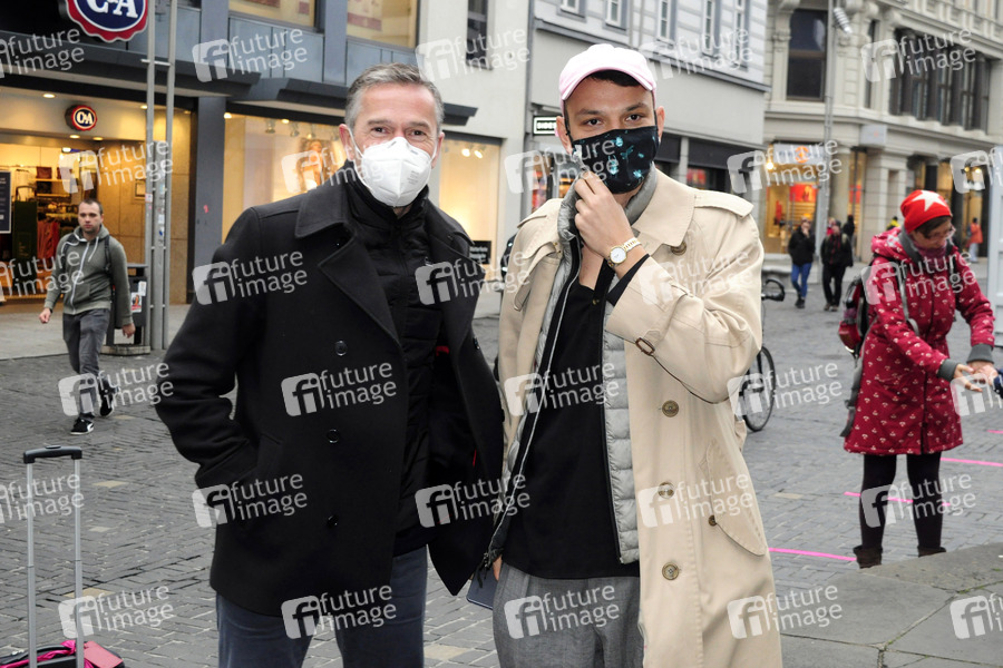 Dirk Steffens und Fritz Habekuß beim Fototermin anlässlich der Buchsignierung 'Über Leben - Zukunftsfrage Artensterben: Wie wir die Ökokrise überwinden' in der Konzerthalle Ulrichskirche. Halle/Saale, 17.10.2020