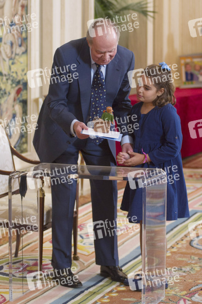 König Juan Carlos empfängt die Gewinner des 'Qué es un Rey para ti' Schulwettbewerbs im Zarzuela Palast, Madrid