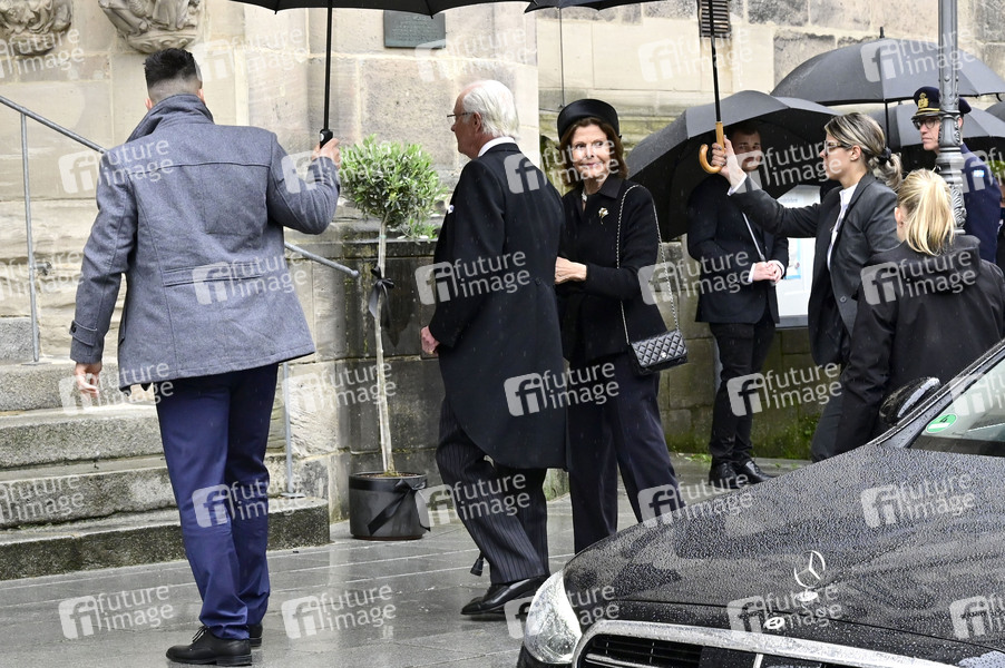 König Carl Gustaf von Schweden und Königin Silvia von Schweden bei der Trauerfeier für Andreas Prinz von Sachsen-Coburg und Gotha in Coburg in der Morizkirche. Coburg, 24.04.2025