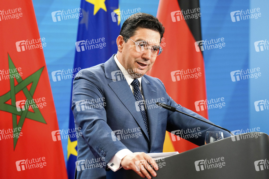 Dialog, Politik, Staatsbesuch, Pressekonferenz, Pressestatement, Staatsgast, Auswärtiges Amt, Außenminister, Politiker, Minister für auswärtige Angelegenheiten - afrikanische Zusammenarbeit und marokkanische Staatsangehörige im Ausland des Königreichs Marokko