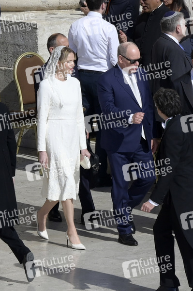 Fürst Albert II. von Monaco mit Ehefrau Charlene bei der Amtseinführung von Papst Leo XIV. auf dem Petersplatz. Vatikanstadt, 18.05.2025