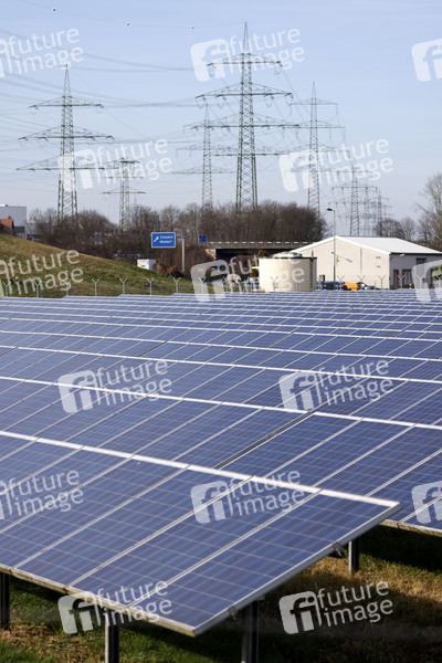 Der Solarpark Troisdorf Oberlar ist eine Fotovoltaik-Solarstromanlage der Stadtwerke Troisdorf und das größte Solar-Kraftwerk in NRW. Die Freilandanlage kann etwa 1000 Haushalte in der Region mit sauberem Solarstrom versorgen. Ein Stacheldrahtzaun umgibt das Gelände. Troisdorf, 12.02.2022