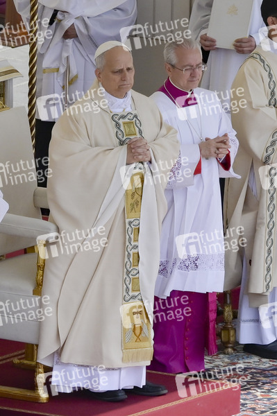 Papst Leo XIV. seiner Amtseinführung auf dem Petersplatz. Vatikanstadt, 18.05.2025