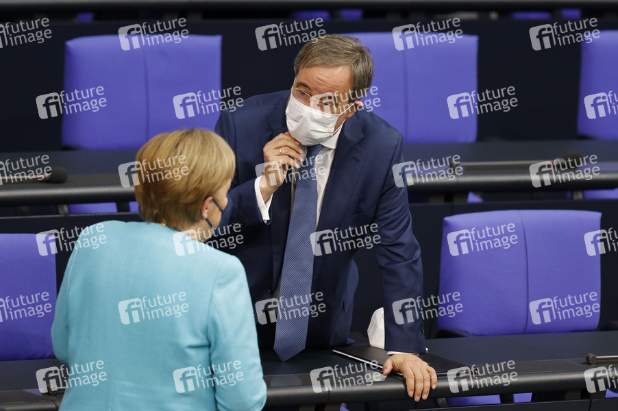 Angela Merkel und Armin Laschet in der 236. Sitzung des Deutschen Bundestages im Reichstagsgebäude. Berlin, 24.06.2021