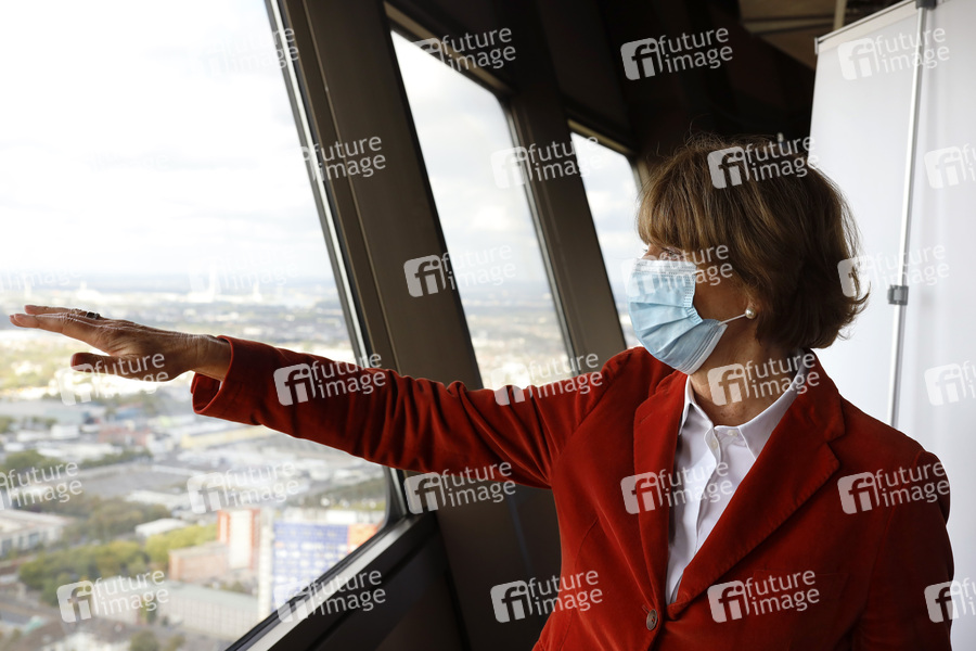 Henriette Reker bei der Unterzeichnung der Vereinbarung für ein zukunftssicheres 5G-Netz in Köln auf dem Fernsehturm Colonius. Köln, 09.09.2020