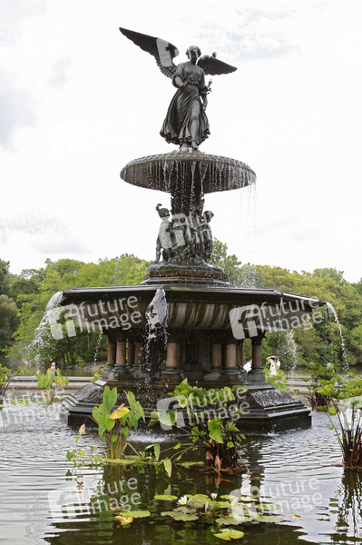 Bronzestatue über der oberen Schale des Bethesda Brunnen, Engel über den Gewässern, Künstlerin Emma Stebbins, Höhe: 2.6 Meter, eingeweiht 1873