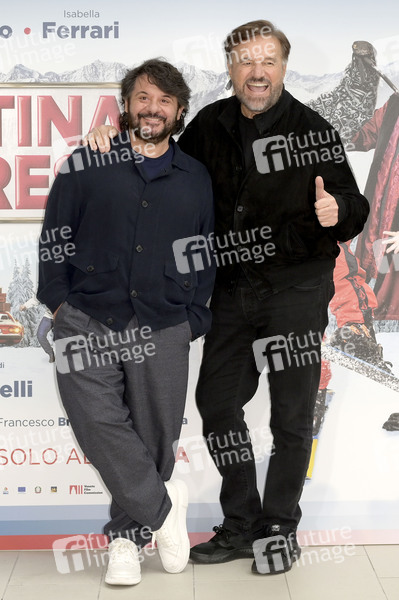 Lillo Pasquale Petrolo und Christian De Sica beim Photocall zum Kinofilm 'Cortina Express' im Hotel Le Meridien Visconti Rome. Rom, 19.12.2024