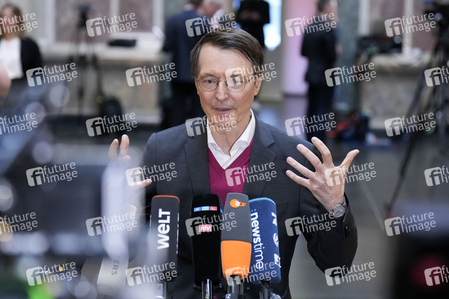 Karl Lauterbach bei einem Pressestatement am Rande der 1042. Sitzung des Bundesrates im Plenarsaal des Preußischen Herrenhauses. Berlin, 22.03.2024
