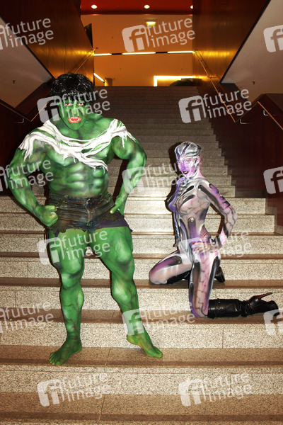 Comics-Bodypainting und Photoshooting mit Olimp-Model Horst und Model Lena im Ruhr Congress Centrum, Bochum. Body Paint Künstler: Jörg Düsterwald