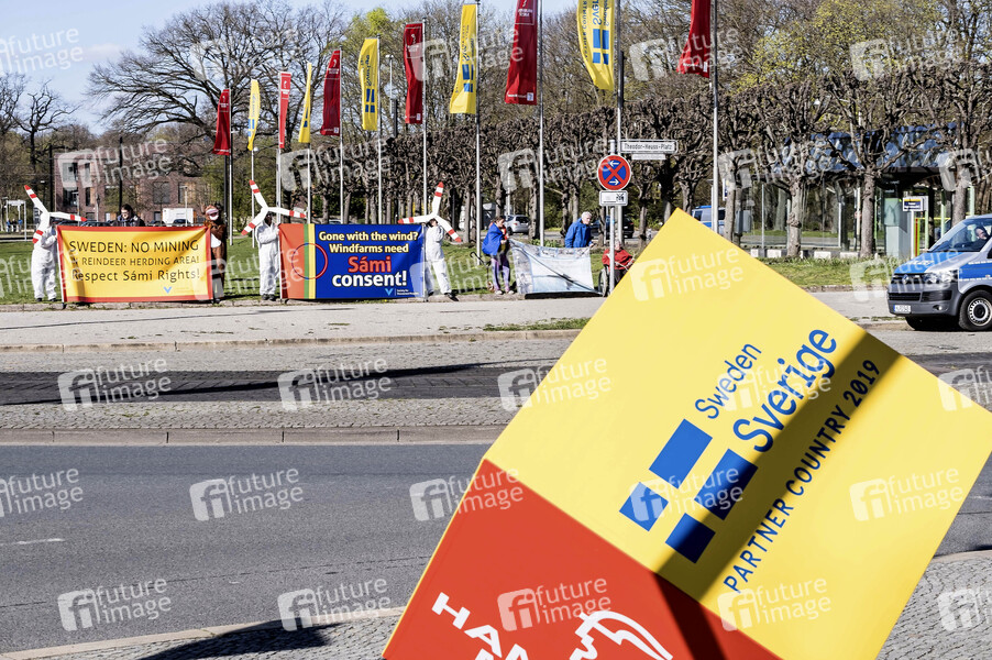 Demonstranten bei der Eröffnung der Hannover Messe 2019 im HCC. Hannover, 31.03.2019