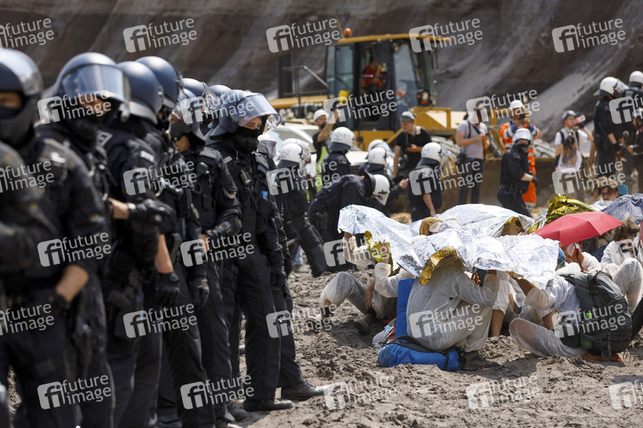 Erderwärmung, Klimagase, Kohlegegner, Klimaaktivisten, Klima-Notstand, Klimanotstand, Klimakrise, Klima-Krise, Energiewende, CO2, Treibhausgase, Klimaschutz, Schulstreiks für das Klima, Klima-Demonstration, Klima-Demo, Klimademo, Fridays for Future, Ende Gelände, Demonstration, Demonstranten, Demo, Kundgebung, Kohlekraft, RWE, Protest, Aktion, Banner, Parolen, Politik, Klimaschutz, Klimakrise, Klimawandel, CO2-Ausstoß, CO2-Steuer, Kohleausstieg, Fossile Brennstoffe, Klimapolitik, Hochneukirch, Keyenberg, Jüchen, Erkelenz, Grevenbroich, Tagebau, Garzweiler II, Braunkohlerevier, Climate Change, Jugendbewegung, Aktivismus, Climate Justice, Polizeikette, Polizei, Grubensturm, Demonstrationszug, Braunkohlegegner, Grubenrand, Aktivisten, Goldener Finger, Polizei, Polizeikräfte, Aktionsbündnis, Neurath, Kohle, Kohleversorgung, Braunkohle, Steinkohle, Symbolbild, Symbolfoto