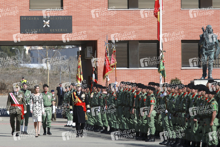 Königin Letizia von Spanien bei der Flaggenzeremonie der Fallschirmjägerbrigade Almogávares auf der Princip Base. Paracuellos de Jarama, 23.02.2019