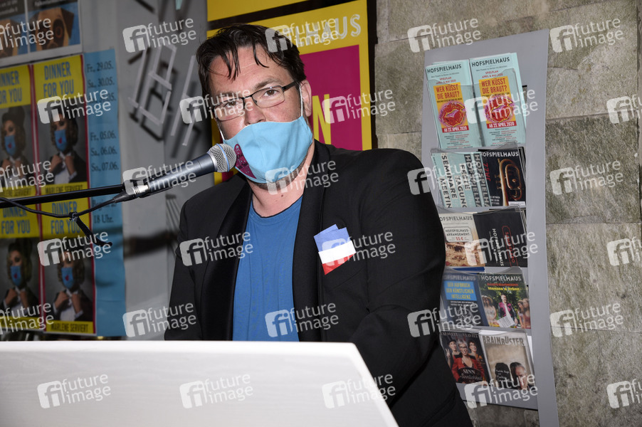 Andre Hartmann bei der Aktion 'Theater lebt' vor dem Hofspielhaus. München, 19.05.2020