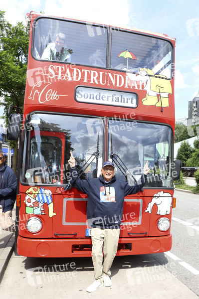 Otto Waalkes bei der Einweihung des Ottifanten-Doppeldeckerbusses an den Landungsbrücken. Hamburg, 06.06.2024