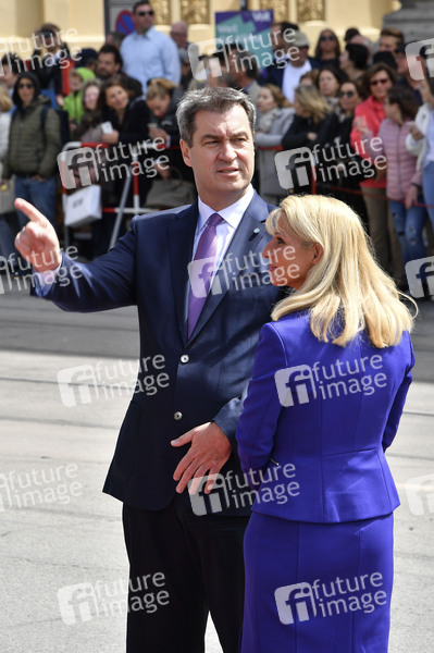 Markus Söder mit Ehefrau Karin Söder bei der Begrüßung der britischen Royals auf dem Max-Joseph-Platz vor der Residenz München. München, 09.05.2019