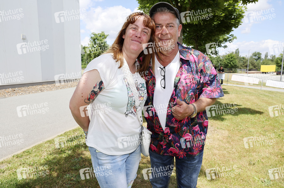 Michael Hirte mit Ehefrau Sandra Hirte beim großen Lausitzer Schlager-Sommer-Open-Air 2025 im Messepark. Löbau, 29.06.2025