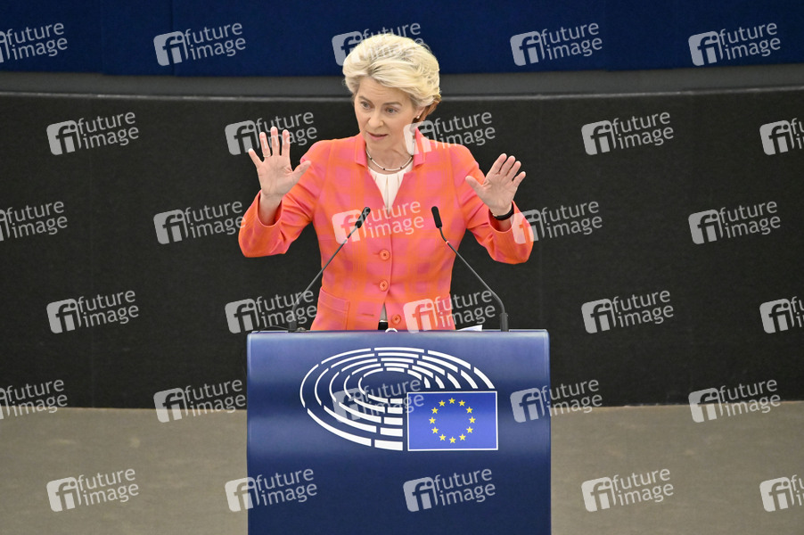 Europäisches Parlament, Plenum, Plenartagung, Plenardebatte, Plenarsitzung, Debatte, Rede, Politik, Strasbourg, Strassburg, Europaparlament, Europa-Politik, EU-Abgeordnete, EU-Parlament, EP, Parlament der Europäischen Union, European Parliament, European Union, Parlamentum Europaeum, MdEP, Mitglied des Europäischen Parlaments, Politikerin, Deutschland, CDU, Präsidentin der Europäischen Kommission, EU-Präsidentin
