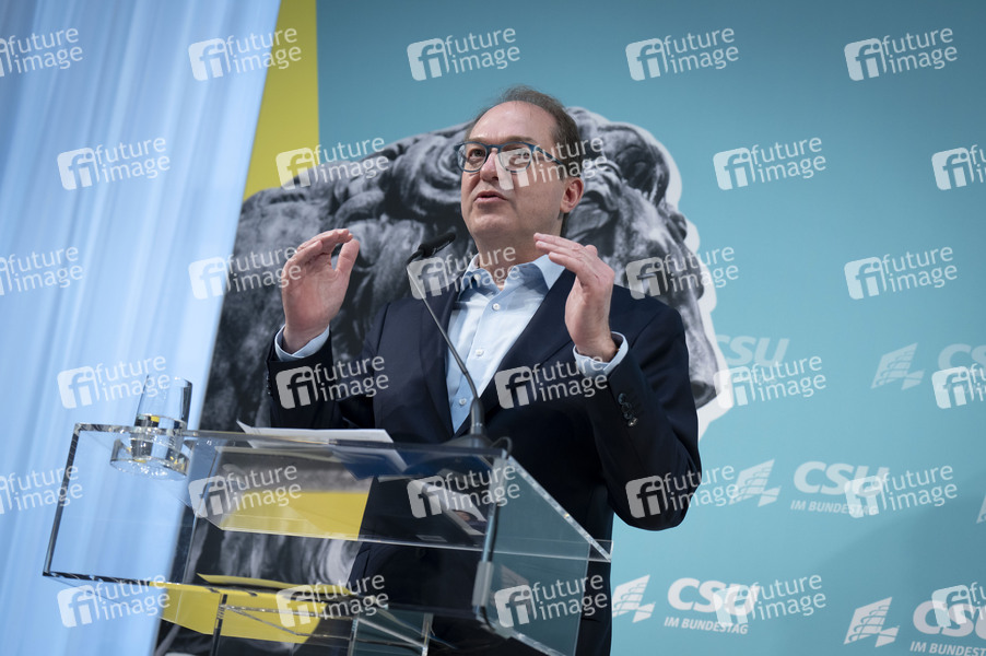 Alexander Dobrindt bei einer Pressekonferenz der CSU in der Vertretung des Freistaates Bayern beim Bund. Berlin, 25.02.2025