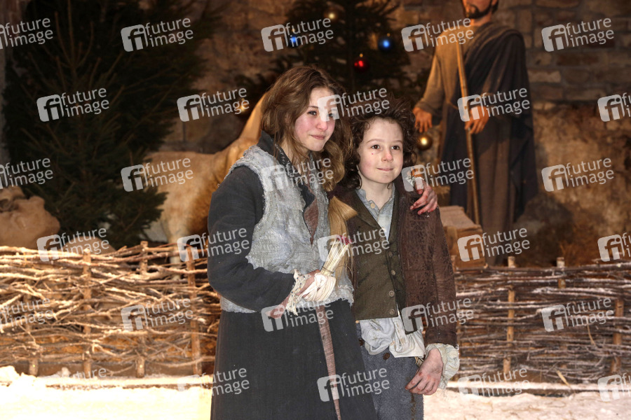 Lea Mueller und Joerg Hartmann beim Fototermin am Set des Fernsehfilms 'Das Mädchen mit den Schwefelhölzern' aus der ARD-Märchenreihe 'Sechs auf einen Streich' in der Zitadelle Spandau. Berlin, 18.03.2013