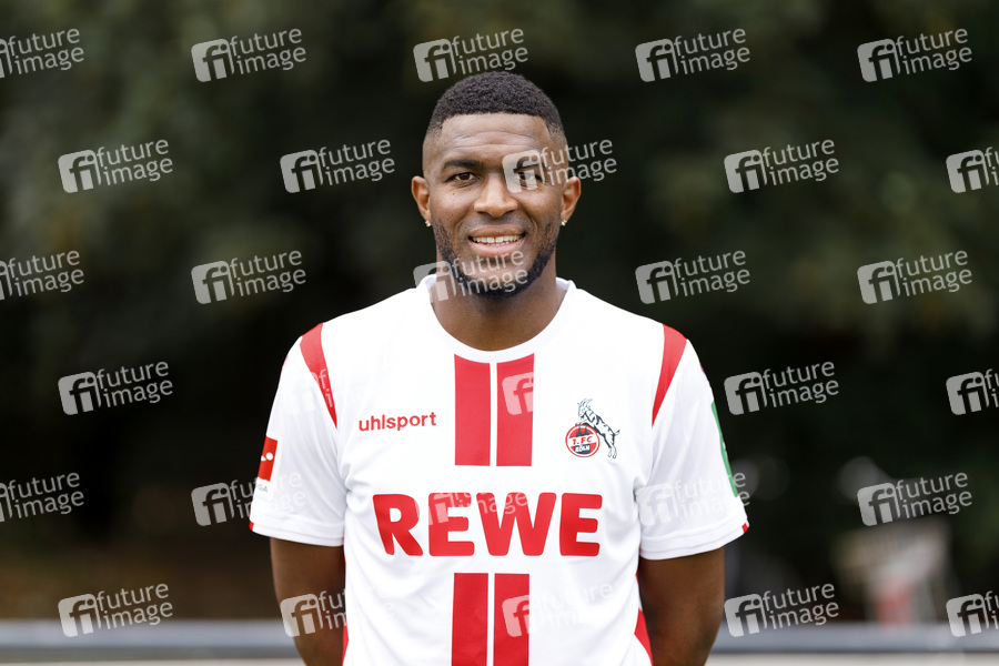 Anthony Modeste beim Fototermin im Rahmen des Media Day des 1. FC Köln mit den neuen Trikots in der Saison 2020/2021 am Geißbockheim. Köln, 14.08.2020