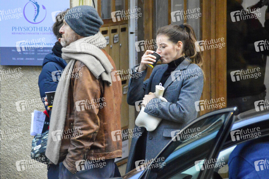 Götz Schubert und Yvonne Catterfeld bei Dreharbeiten am Set des ARD TV-Films 'Wolfsland - Die traurigen Schwestern' (AT) in der Jakobstraße. Görlitz, 23.11.2020