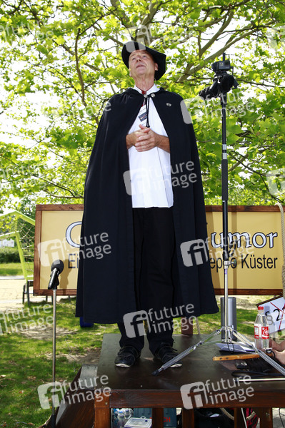 Beppo Küster mit seiner Protest-Show 'Galgen-Humor' vor dem Pflegestützpunkt Marzahn-Hellersdorf. Berlin, 15.06.2019