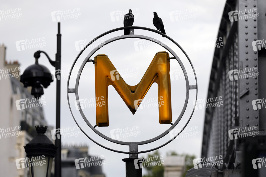 Métro Paris, Massentransportsystem, Nahverkehr, Pariser Bahn, U-Bahn-Haltestelle, Metro-Logo, U-Bahn, Eingang, Schild, Reise, Urlaub, Sightseeing, Kultur, Sehenswürdigkeit, Tourismus, Frankreich