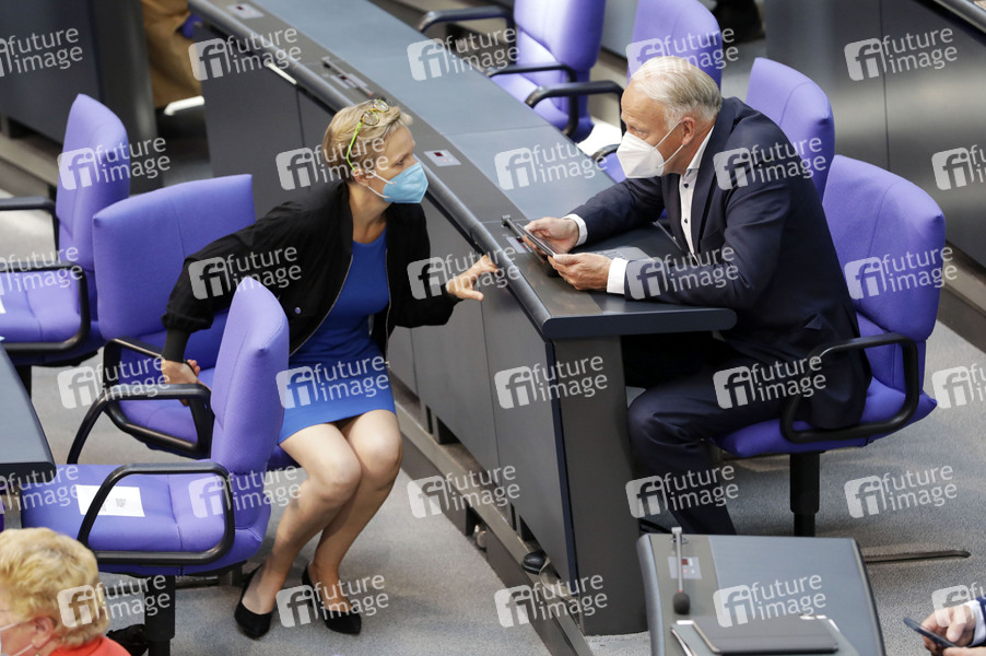 Franziska Brantner und Jürgen Trittin in der 234. Sitzung des Deutschen Bundestages im Reichstagsgebäude. Berlin, 11.06.2021