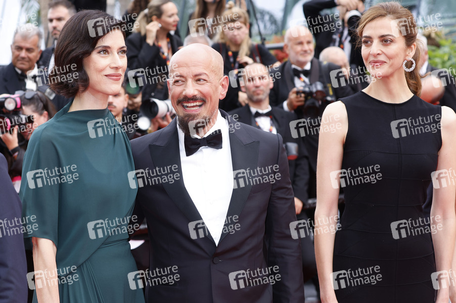 Cherien Dabis, Tarik Saleh und Zineb Triki bei der Premiere des Kinofilms 'Highest 2 Lowest' auf dem Festival de Cannes 2025 / 78. Internationale Filmfestspiele von Cannes im Palais des Festivals. Cannes, 19.05.2025