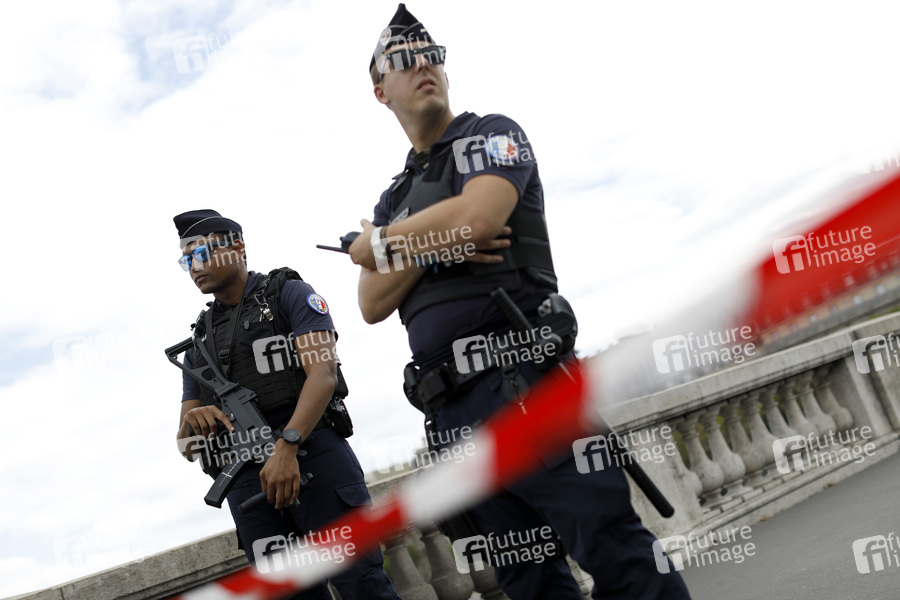 Tourismus, Touristen, Sightseeing, Stadt der Liebe, Architektur, Sommer in Paris, Reiseziel, Frankreich, Kultur, Polizei, Polizist, Polizistin, Polizisten, Pariser Polizei, französische Polizisten, Streife, innere Sicherheit, Sicherheitsmaßnahmen, Terrorabwehr, Terror-Gefahr, Nationalpolizei, CRS, Republikanische Sicherheitskompanien, Compagnies Républicaines de Sécurité, Police nationale, Nationalpolizei