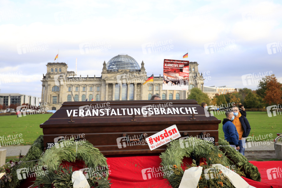 Großdemonstration, Veranstaltungsbranche, Unterhaltungsbranche, Aktion, Demo, Demonstration, Protest, Aktion, Notlage, finanzielle Not, Corona, Sars-CoV-2, Covid-19, Coronavirus, Coronaviren, Corona-Virus, Coronakrise, Corona-Krise, Corona-Pandemie, Coronamaßnahmen, Corona-Schutz, Ausnahmesituation, Einnahmeverluste, Veranstaltungsregelungen, Nachbesserungen der Veranstaltungsregelungen, Wirtschaft, wirtschaftliche Folgen der Pandemie, Wirtschaftspolitik, Politik, Reichstag, Reichstagsgebäude, Sitz des Deutschen Bundestages