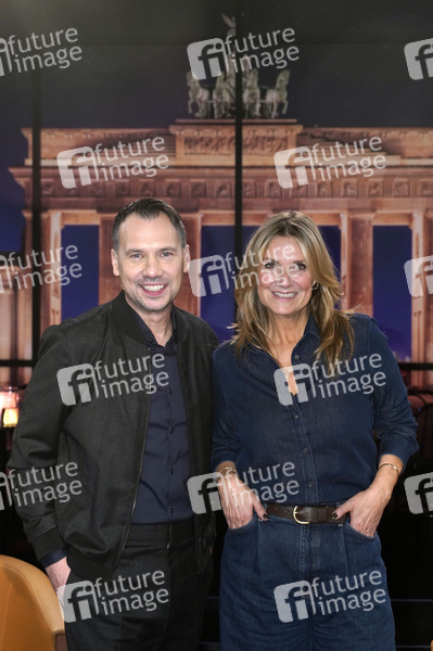 Sebastian Fitzek und Kim Fisher bei der Aufzeichnung der MDR/rbb-Talkshow 'Riverboat' im Studio A im rbb Fernsehzentrum. Berlin, 15.10.2021