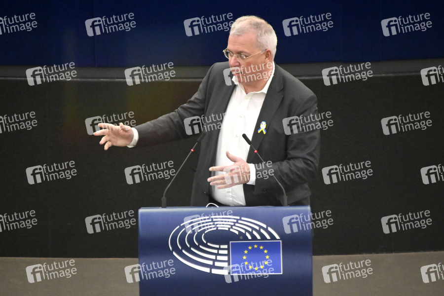 Markus Ferber bei einer Plenartagung zur Mindestbesteuerungsrichtlinie im Plenarsaal des Europäischen Parlaments. Straßburg, 04.04.2022