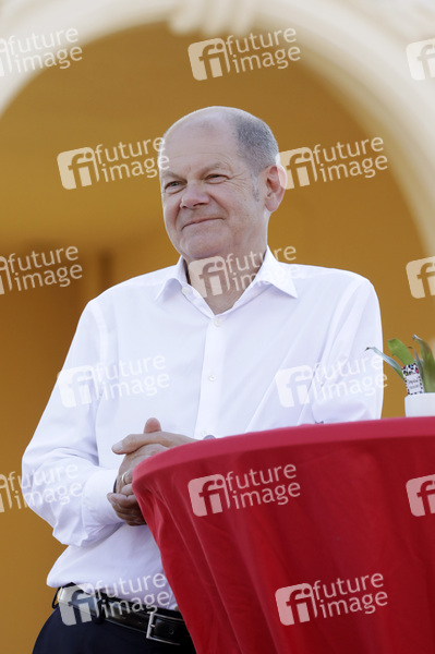 Olaf Scholz bei einem öffentlichen Bürgergespräch vor dem Brandenburger Tor. Potsdam, 30.07.2021