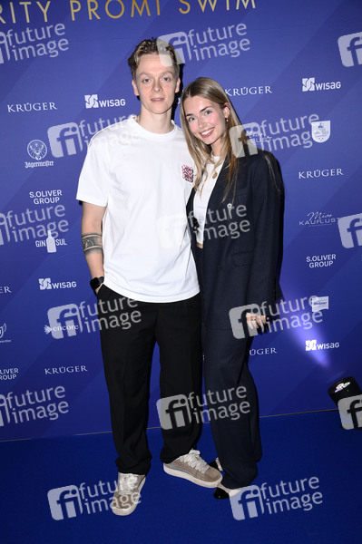 Jonas Monar und Emily Port beim Charity Promi Swim Event 2025 von Maximilian Seitz zugunsten von 'Kindeswohl-Berlin' im Hotel Pullman Berlin Schweizerhof. Berlin, 24.07.2025