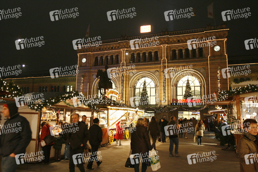 Weihnachten, Christmas, Weihnachtsbaum, Buden, Bahnhofsgebäude, Ernst-August-Denkmal, Bahnhof