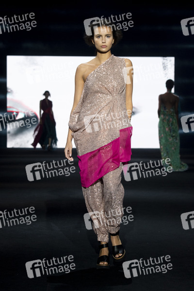 Model bei der Ulises Merida Fashion Show auf der 73. Mercedes-Benz Fashion Week Madrid unter Einhaltung aller Corona-Regeln auf dem Messegelände Ifema. Madrid, 10.04.2021