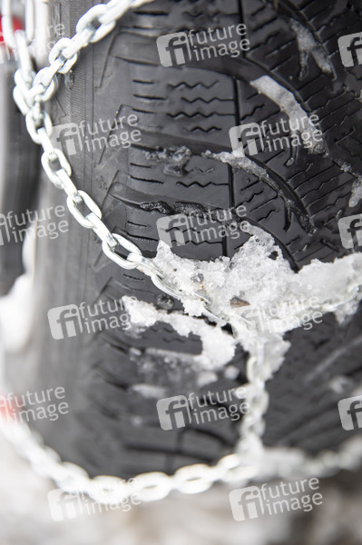 Fahrzeuge, Fahrzeug, Fahrhilfe, Reifen, Winterreifen, Boden haftung, Matschig, Antriebsketten, Anfahrhilfe, Spurketten, PKW, LKW, Räder, Rad, Größe, Stahl, Material, Verzinkt, Laufflächen, Durchdrehen, Durchrutschen, Lenkachse, Längsführung, Kettenglieder, Radkasten, Stahlring, ESP, Elektronische Stabilisierung, ASR, Anti-Schlupf, Montage, Symbolbild, Symbolfoto, Frost, Kühl, Minusgrade, Schnee, Tiefschnee