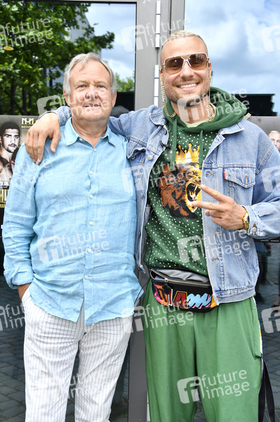 Eric Sindermann mit Vater Thomas Sindermann bei der Pressekonferenz zum Boxkampf Eric Sindermann vs. Jörg Hansen im REDO XXL Friedrichshain. Berlin, 10.06.2024