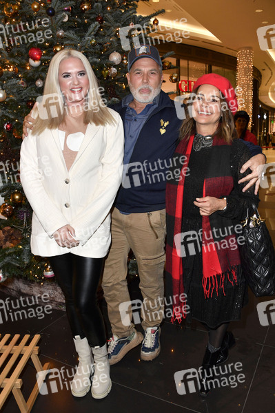Sarah Knappik, Frank Matthee und Gitta Saxx beim Promi Charity Event zugunsten des strassenfeger e. V. in der Mall of Berlin. Berlin, 06.12.2022