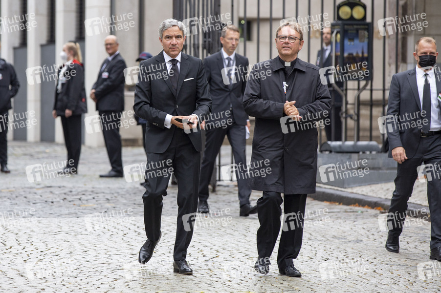 Stefan Harbarth und Karl Jüsten beim ökumenischen Gottesdienst für die Opfer der Flutkatastrophe im Hohen Dom zu Aachen. Aachen, 28.08.2021