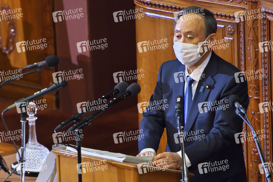 Yoshihide Suga bei der 204. Diäten-Sitzung im Unterhaus des Parlaments. Tokio, 18.01.2021